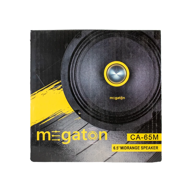 این محصول دارای بولت آلومینیومی بوده و به همین دلیل می توان گفت که شما می توانید مدت زمان بسیار بیشتری از این محصول استفاده کنید؛ در صورتی که فشار زیادی به محصول وارد نمی شود. به دلیل اینکه این محصول دارای بولت آلومینیومی هستش، بولت آن از ورود گرد و غبار نیز جلوگیری کرده و از آسیب رسیدن به سیم پیچ میدرنج جلوگیری می کند. جنس صفحه دیافراگم این میدرنج از نوع کاغذی هستش که به صورت یک تیکه با سوراند آن پرس شده است؛ یکی از دلایلی که می توان گفت توی حجم و پرتاب صدای این محصول موثر هستش صفحه کاغذی آن است. ترمنیال هایی که برای این میدرنج استفاده شده است، از بهترین نوع ترمینال بوده که آن را فشاری یا مکانیکی می نامند و شما می توانید راحت ترین، ساده ترین و بهترین اتصال را با این ترمنیال داشته باشید. میدرنج 6 اینچ مگاتون مدل CA-65M دارای توان حداکثری برابر با 300 وات MAX و توان حقیقی برابر با 130 وات RMS می باشد که به دلیل سنسیویتی بالایی که دارد، به راحتی با هر آمپلی فایری که بالای 50 آرامس است، راه اندازی می شود. برای جلوگیری از آسیب دیدن صفحه این محصول یک جفت قاب فلزی زیبا و جذاب نیز در داخل بسته بندی محصول در نظر گرفته شده است که می توانید آن را بر روی میدرنج ها نصب کنید. همچنین برای جلوگیری از شکستگی و آسیب دیدن مگنت این محصول واشر لاستیک در نظر گرفته شده است.