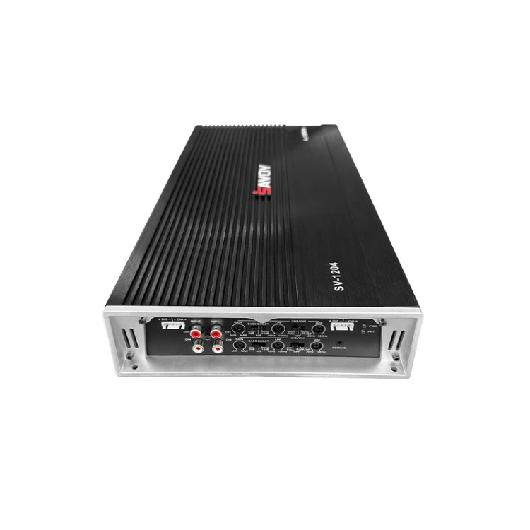 آمپلی فایر 4 کانال ساووی مدلSV_1204 آمپلیفایِر SV-1204 یکی از مدلهای قدرتمند و خوشساخت در دستهی آمپلیفایِرهای چهار کانال کلاس AB است که با ترکیب توان بالا، صدای شفاف و طراحی مهندسیشده، گزینهای ایدهآل برای ارتقای سیستم صوتی خودرو به شمار میرود. این مدل برای کسانی طراحی شده که به دنبال صدایی دقیق، پویا و قدرتمند در کنار قابلیت تنظیم حرفهای برای هر کانال هستند. عملکرد و قدرت واقعی در بخش توان خروجی (RMS)، این آمپلیفایِر در امپدانس ۴ اهم توان ۱۲۰ وات در هر کانال را ارائه میدهد و در حالت ۲ اهم این عدد به ۲۴۰ وات در هر کانال افزایش مییابد. به همین ترتیب، در حالت Bridge (پلزنی)، خروجی آن به ۴۸۰ وات در دو کانال میرسد که قدرتی بسیار مناسب برای راهاندازی سابووفرها و اسپیکرهای قدرتمند محسوب میشود. کلاس کاری AB باعث شده صدای گرم، طبیعی و خوشهارمونیکی در محدودهی فرکانسی ۳۲ هرتز تا ۲۰ کیلوهرتز تولید کند و نویز یا دیستورشن آن به کمتر از ۰٫۱٪ برسد. کنترل فرکانس و فیلترها آمپلیفایِر SV-1204 مجهز به دو بخش فیلتر داخلی LPF و HPF است که امکان تنظیم دقیق صدای خروجی را فراهم میکنند. LPF (Low Pass Filter): بازهی تنظیم از ۵۰ تا ۲۵۰ هرتز، برای کنترل و تفکیک بهتر صدای بیس و سابووفر. HPF (High Pass Filter): بازهی تنظیم از ۱۲۰ هرتز تا ۳ کیلوهرتز، برای حذف فرکانسهای پایین و تمرکز روی وضوح صدا در اسپیکرهای میدرنج و توییتر. علاوه بر این، کنترل Bass Boost با دامنهی ۰ تا ۱۸ دسیبل (در ۴۵ هرتز)، به شما اجازه میدهد قدرت بیس را مطابق سلیقهی خود افزایش دهید. قابلیت Phase Control نیز از ۰ تا ۱۸۰ درجه قابل تنظیم است تا بهترین هماهنگی میان کانالها و سابووفر حاصل شود. ساختار و طراحی ورودی ولتاژ در این آمپلیفایِر در محدودهی ۱۳٫۸ تا ۱۴٫۴ ولت طراحی شده تا با سیستم برق خودرو بهخوبی سازگار باشد. طراحی ظاهری دستگاه با بدنهی فلزی مقاوم و خطوط ساده، حس قدرت و استحکام را منتقل میکند. تولید این محصول در کشور چین (Made in P.R.C) انجام شده و از نظر کیفیت ساخت، جزو مدلهای اقتصادی اما کارآمد بازار به حساب میآید.