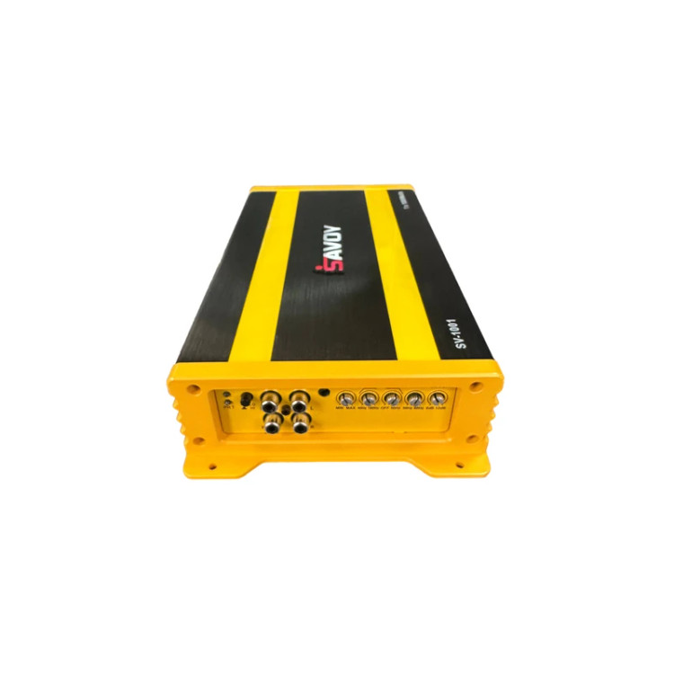آمپلی فایر مونو ساووی مدل SV_1001 آمپلیفایر مونو ساووی مدل SV-1001 یکی از محصولات جدید و پرقدرت برند ساووی (Savoy) است که برای راهاندازی سابووفرهای قدرتمند طراحی شده است. این مدل با طراحی کلاس D و راندمان بالا، عملکردی بینظیر در تولید بیس عمیق و کنترلشده ارائه میدهد. اگر به دنبال صدایی قدرتمند، شفاف و بدون نویز برای سیستم صوتی خودرو خود هستید، SV-1001 یکی از بهترین گزینههاست. طراحی و ساخت بدنهی آمپلی فایر ساووی SV-1001 از آلومینیوم فشرده با خطوط حرارتی طراحی شده است تا گرمای تولید شده در حین استفاده بهخوبی دفع شود. ترکیب رنگ مشکی و زرد متالیک به همراه لوگوی برجستهی Savoy حس قدرت و کیفیت را القا میکند.این آمپلیفایر با بهرهگیری از فناوری Class D، مصرف انرژی پایینتری نسبت به مدلهای کلاس AB دارد و در عین حال، بازدهی فوقالعادهای در ارائه توان بالا و کنترل دقیق صدا ارائه میدهد. قدرت واقعی و کنترل کامل بر بیس آمپلی فایر ساووی SV-1001 دارای توان واقعی (RMS) بسیار بالا برای درایو کردن ساب ووفرهای قدرتمند است. طبق اطلاعات درجشده روی جعبه، این مدل دارای توانهای زیر است: RMS Power @4Ω: 350 وات RMS Power @2Ω: 600 وات RMS Power @1Ω: 1000 وات این مقادیر نشان میدهد که این آمپلیفایر حتی در امپدانس پایین 1 اهم نیز پایداری کامل دارد و میتواند به سابووفرهای حرفهای با توان بالا انرژی لازم را برساند. برای افرادی که عاشق بیس سنگین و حجیم هستند، این توان بالا همراه با کنترل دقیق در فرکانسهای پایین، تجربهای لذتبخش از شنیدن موسیقی را فراهم میکند. پاسخ فرکانسی و تنظیمات حرفهای پاسخ فرکانسی این آمپلی فایر در بازه 15Hz تا 25kHz است؛ به همین دلیل علاوه بر بیس، بخشهای میانی نیز با وضوح بالا بازتولید میشوند.همچنین وجود فیلتر LPF (Low Pass Filter) در بازه 40Hz تا 180Hz به شما اجازه میدهد که فرکانسهای خروجی را متناسب با نوع سابووفر خود تنظیم کنید. به این ترتیب میتوانید بیس را دقیقتر، نرمتر یا عمیقتر بسته به سلیقهی خود تنظیم کنید. ویژگی دیگر Bass Boost (0 تا 12dB) است که امکان افزایش شدت بیس را فراهم میکند تا در صورت نیاز صدای ضربهای و هیجانیتری از سابووفر بشنوید.