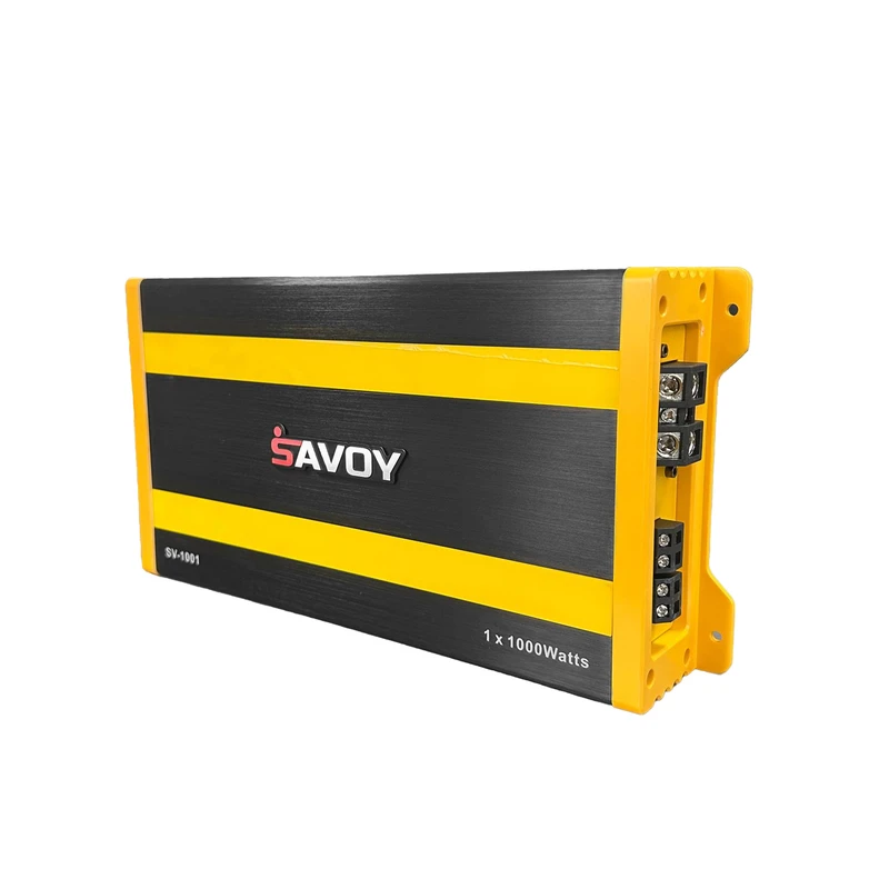 آمپلی فایر مونو ساووی مدل SV_1001 آمپلیفایر مونو ساووی مدل SV-1001 یکی از محصولات جدید و پرقدرت برند ساووی (Savoy) است که برای راهاندازی سابووفرهای قدرتمند طراحی شده است. این مدل با طراحی کلاس D و راندمان بالا، عملکردی بینظیر در تولید بیس عمیق و کنترلشده ارائه میدهد. اگر به دنبال صدایی قدرتمند، شفاف و بدون نویز برای سیستم صوتی خودرو خود هستید، SV-1001 یکی از بهترین گزینههاست. طراحی و ساخت بدنهی آمپلی فایر ساووی SV-1001 از آلومینیوم فشرده با خطوط حرارتی طراحی شده است تا گرمای تولید شده در حین استفاده بهخوبی دفع شود. ترکیب رنگ مشکی و زرد متالیک به همراه لوگوی برجستهی Savoy حس قدرت و کیفیت را القا میکند.این آمپلیفایر با بهرهگیری از فناوری Class D، مصرف انرژی پایینتری نسبت به مدلهای کلاس AB دارد و در عین حال، بازدهی فوقالعادهای در ارائه توان بالا و کنترل دقیق صدا ارائه میدهد. قدرت واقعی و کنترل کامل بر بیس آمپلی فایر ساووی SV-1001 دارای توان واقعی (RMS) بسیار بالا برای درایو کردن ساب ووفرهای قدرتمند است. طبق اطلاعات درجشده روی جعبه، این مدل دارای توانهای زیر است: RMS Power @4Ω: 350 وات RMS Power @2Ω: 600 وات RMS Power @1Ω: 1000 وات این مقادیر نشان میدهد که این آمپلیفایر حتی در امپدانس پایین 1 اهم نیز پایداری کامل دارد و میتواند به سابووفرهای حرفهای با توان بالا انرژی لازم را برساند. برای افرادی که عاشق بیس سنگین و حجیم هستند، این توان بالا همراه با کنترل دقیق در فرکانسهای پایین، تجربهای لذتبخش از شنیدن موسیقی را فراهم میکند. پاسخ فرکانسی و تنظیمات حرفهای پاسخ فرکانسی این آمپلی فایر در بازه 15Hz تا 25kHz است؛ به همین دلیل علاوه بر بیس، بخشهای میانی نیز با وضوح بالا بازتولید میشوند.همچنین وجود فیلتر LPF (Low Pass Filter) در بازه 40Hz تا 180Hz به شما اجازه میدهد که فرکانسهای خروجی را متناسب با نوع سابووفر خود تنظیم کنید. به این ترتیب میتوانید بیس را دقیقتر، نرمتر یا عمیقتر بسته به سلیقهی خود تنظیم کنید. ویژگی دیگر Bass Boost (0 تا 12dB) است که امکان افزایش شدت بیس را فراهم میکند تا در صورت نیاز صدای ضربهای و هیجانیتری از سابووفر بشنوید.