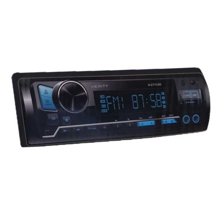 رادیوپخش خودرو وریتی مدل 7112D قابلیت: USB-CHARGE-AUX IN-RADIO-BLUETOOTH-TF CARD را دارد. دارای ریموت کنترل و اپ کنترل قابل نصب بر روی گوشی هوشمند می باشد. میکروفون بلوتوث داخلی دارد و در صورت تمایل میتوان میکروفون جداگانه تهیه و اضافه نمود.
