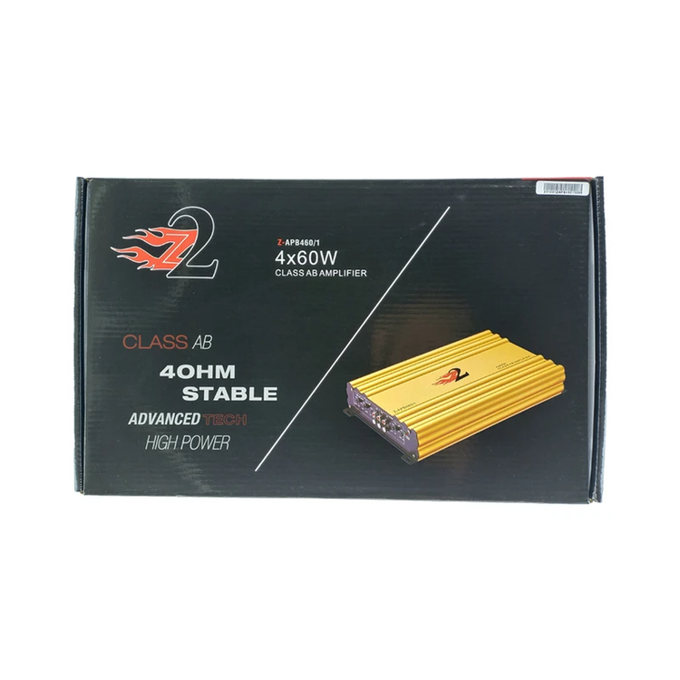آمپیلی فایرZ2 مدل Z-APB460/1 از محصولات پر قدرت و با کیفیت برای راه اندازی سیستم صوتی خودرو می باشد. این محصول در حالت 4اهم 4x60وات قدرت دارد. در حالت 2اهم 4x100وات قدرت دارد. در حالت پل زنی(Bridged) 2x180وات قدرت دارد و مناسب برای راه اندازی سیستم های سبک خودرو می باشد.